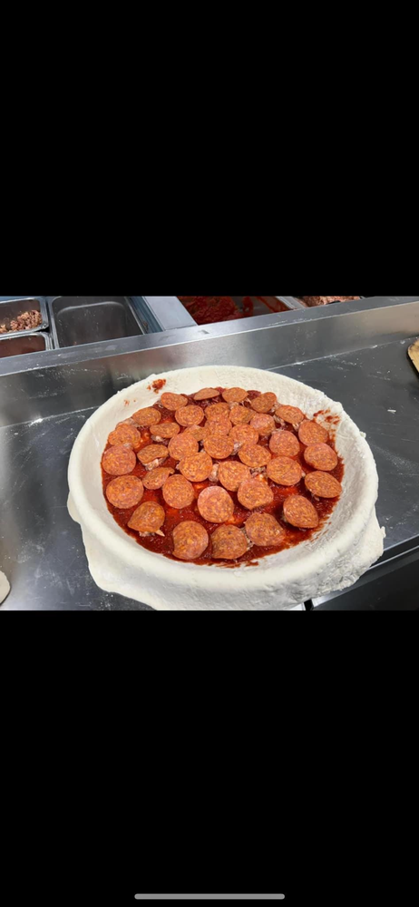 Ham, italian beef, pepperoni, canadian bacon,, tomato, green and black olives, mushrooms, onions, green peppers, and our homemade sub sauce and topped with mozzarella cheese.